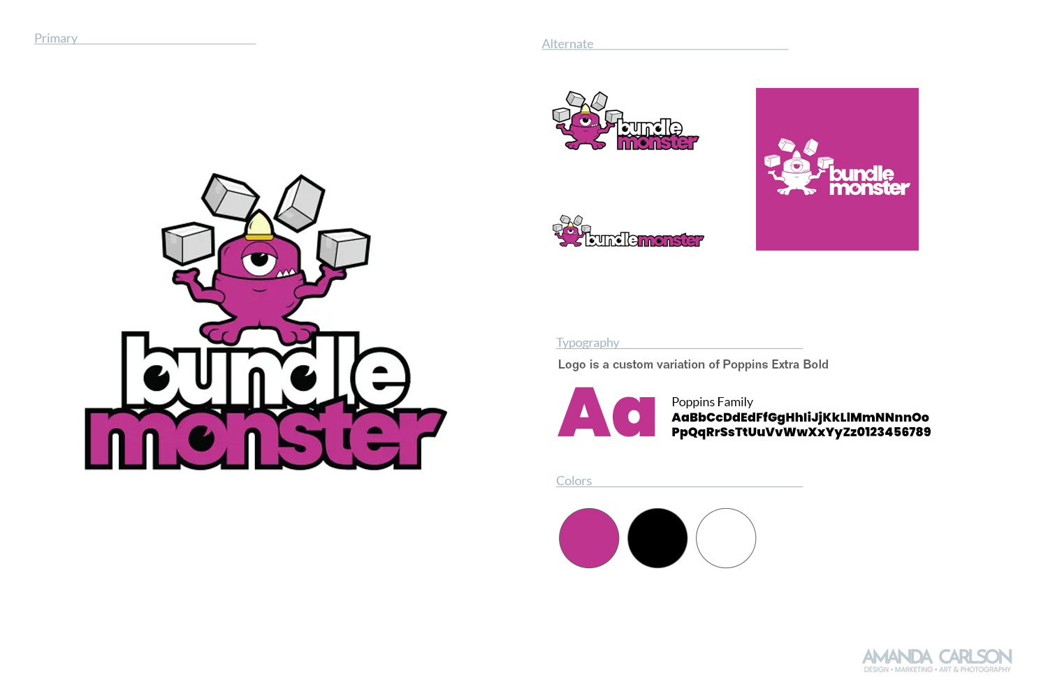 At the height of the loot box craze, Bundle Monster positioned themselves as a packaging and kitting company, aiming to assist loot box companies distribute their boxes. The request was pretty specific, wanting something on the lines of Monster’s Inc. juggling boxes. To keep the logo unique and memorable while providing ultimate flexibility of use, I integrated monster eyes into the wordmark, allowing for recognition in lock up, the character on its own, or wordmark on its own.
