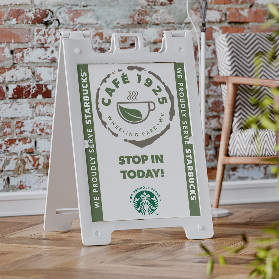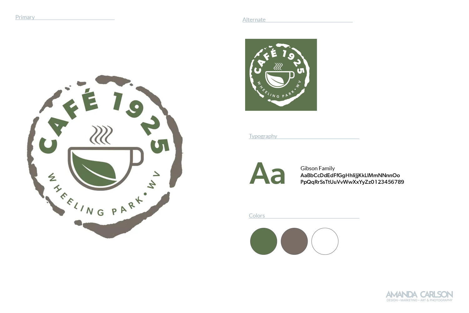 As part of the Wheeling Park White Palace renovation, the park opened an area to function as a coffee shop and daily gathering spot for everyone that enjoys the park’s amenities. This became Cafe 1925. The concept was to incorporate elements of the parks branding, like the leaf in the mug. They also wanted something that felt unified and could function well as a standalone logo away from the park branding. Taking inspiration from other coffee shop logos, the Cafe 1925 logo came to life.
