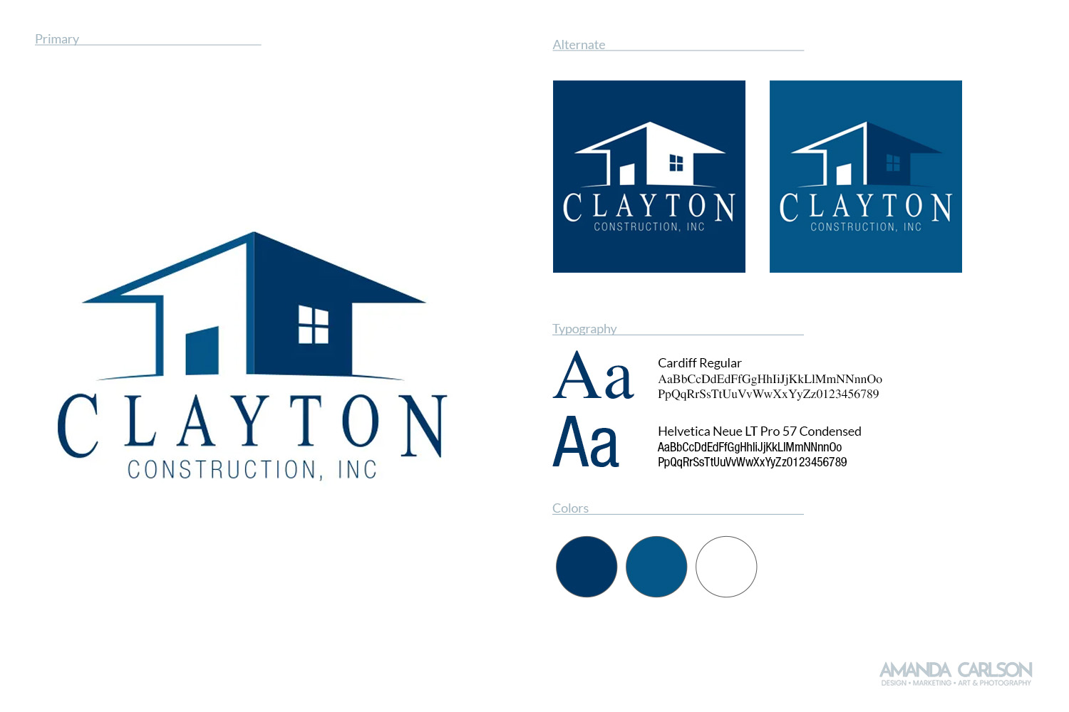 Clayton Construction was looking for a logo that would convey they are home and small commercial building experts. Someone you can count on morning, noon, and night for all your construction projects. With that in mind, I came up with this multi-blue tone logo that, as it moves from white to steel blue and then into navy, it feels like the sun is setting and light is moving across the building icon. The design of the icon is posed in a way that it feels both like a residential home and commercial building and can be used alone, or in lock-up with the wordmark.