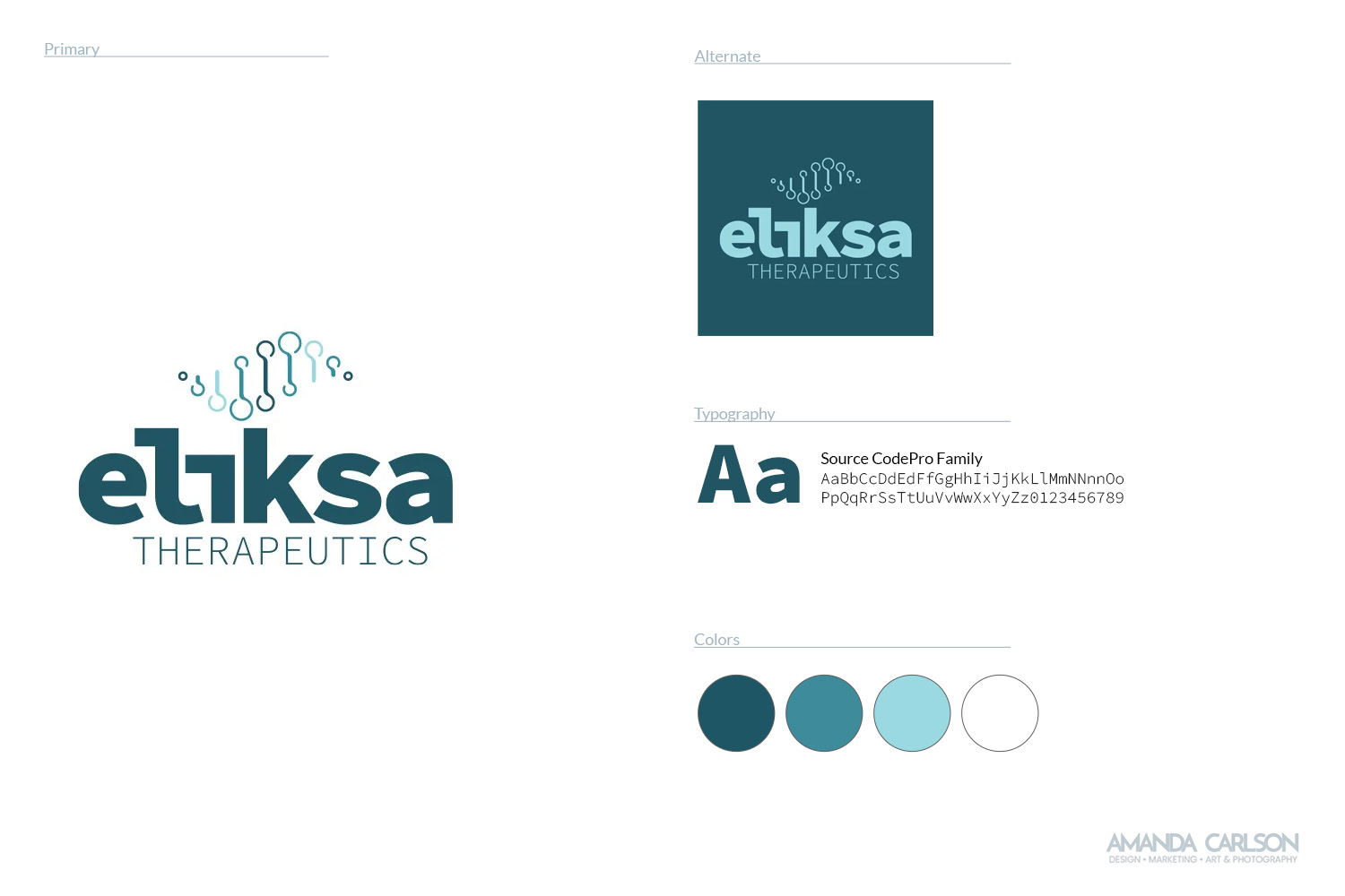 Elika Therapeutics, a biotech company, wanted a new logo that really focused on the biology. At the time, they were developing stem cell and other bio therapies, which is where I got the inspiration for the double helix-ish icon. They also wanted a modern, bold brandmark but not one that was a run-of-the-mill stock font. Taking Source Code Pro, I modified it slightly to be unique, but still useable primary font in their branding package.