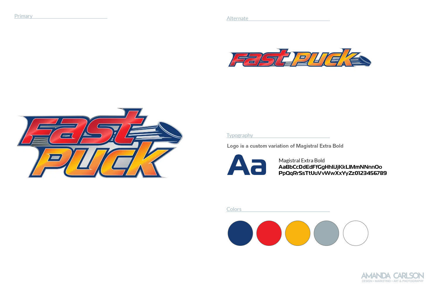 A small company needed branding for the box of their desktop hockey concept game. After much back and forth, they settled on the name Fast Puck. They wanted a logo that conveyed movement and was bright and bold, leaning into the sports world. Taking inspiration from other boardgames on the market and the sports industry as requested, I incorporated bright colors, gradients, and modified a block font to give movement and depth.