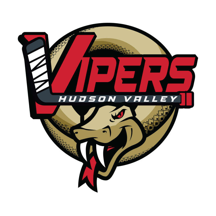 Vipers entering the ice with the primary logo on their jerseys and shells.