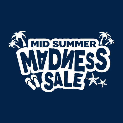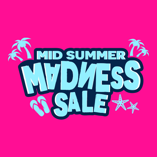 Summer sales event logo. Was going for a bright, playful, and nostalgic look. Designed so that the full color version still works in reverse with the simple addition of an outline.