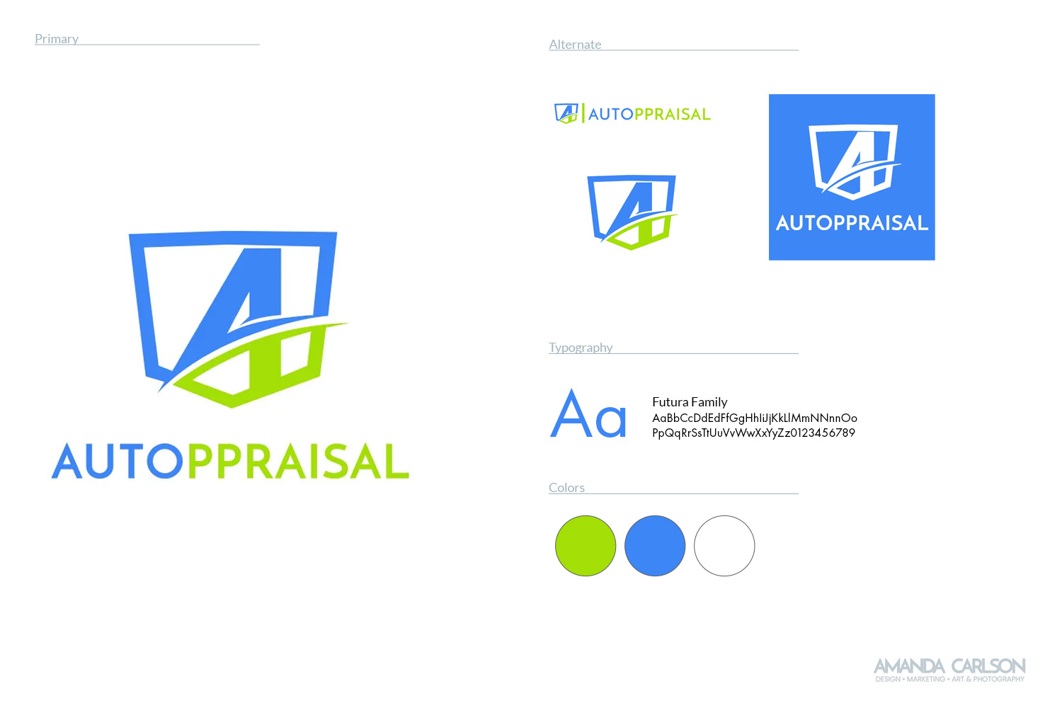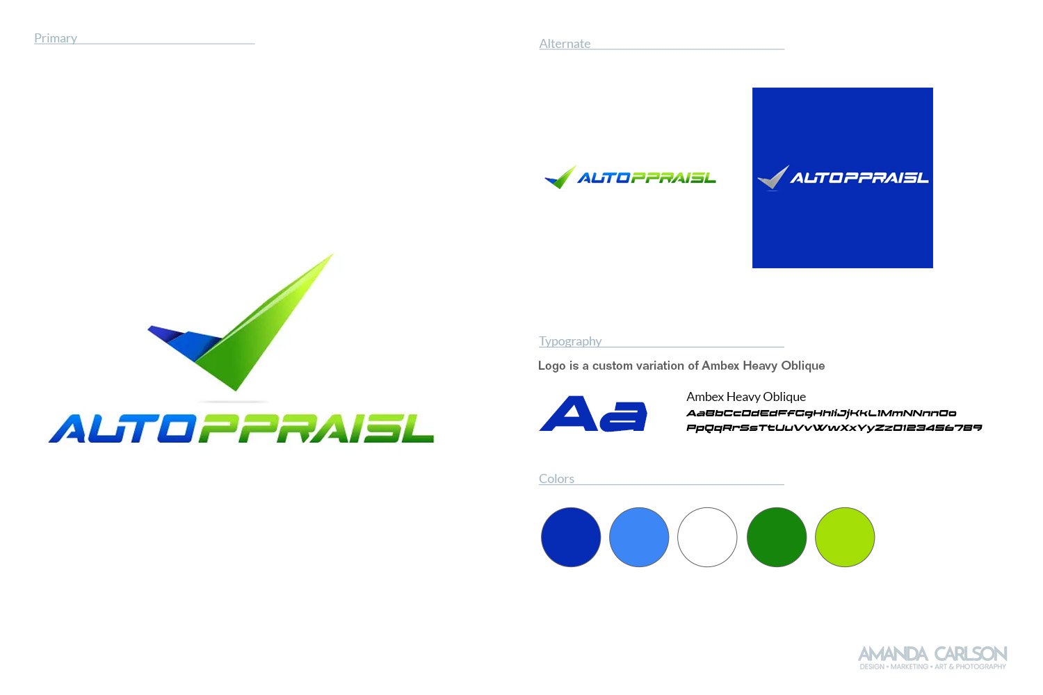 In this second version of the Autoppraisal logo, I retained the greens and blues but gave them more depth and presented them in a dynamic check mark icon, that gives a subtle 3D feel. The text is highlighted by a customized version of a heavy sporty script, making is unique in a world of simple, clean sans serif fonts. The check mark shape is strategically chosen for its representation of confidence, security, and assurance.