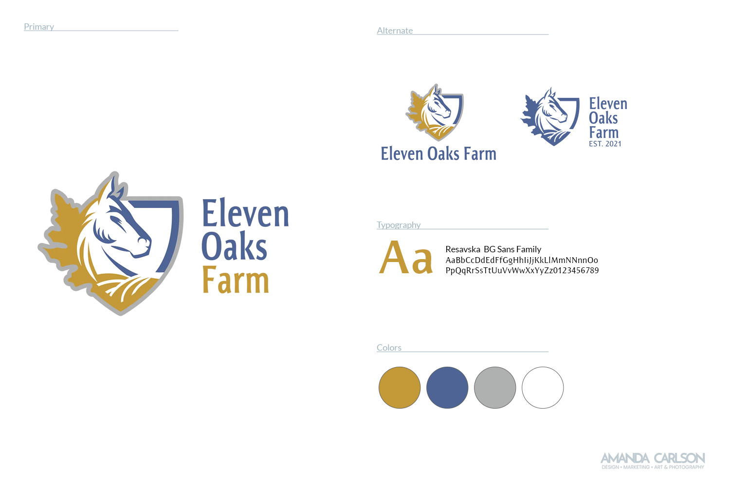 This family thoroughbred horse farm wanted a new logo to be able to put on apparel and other branded items related to the farm business. The logo needed to feature the rolling hills of Western PA, a pin oak leaf prent on the farm, and a profile of one of their horses.