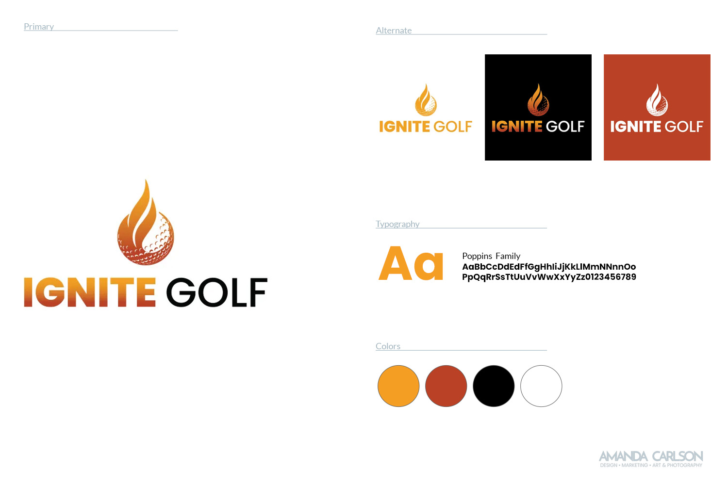 Ignite Golf, company featuring professional golf coaches and golf simulators, wanted a logo that conveyed fire, was bold and bright, and cross functional. The log features a gradient flame surrounding and pulling up off a subtle golf ball texture.. The two-tone, double weight wordmark works independently or in lock-up with the icon.