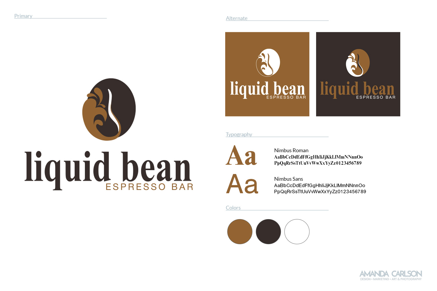 Liquid Bean coffee shop requested a logo that leaned into the liquid in their name but they didn’t want anything that was like a coffee stain (eg. Cafe 1925 and True Addict). For the typography, they wanted a serif that felt high end but not pretentious. The color palette features two rich, deep brown colors. The medium brown feels like a fresh poured, frothy latte while the dark chocolate brings in notes of dark roasted beans. You can almost smell this logo!