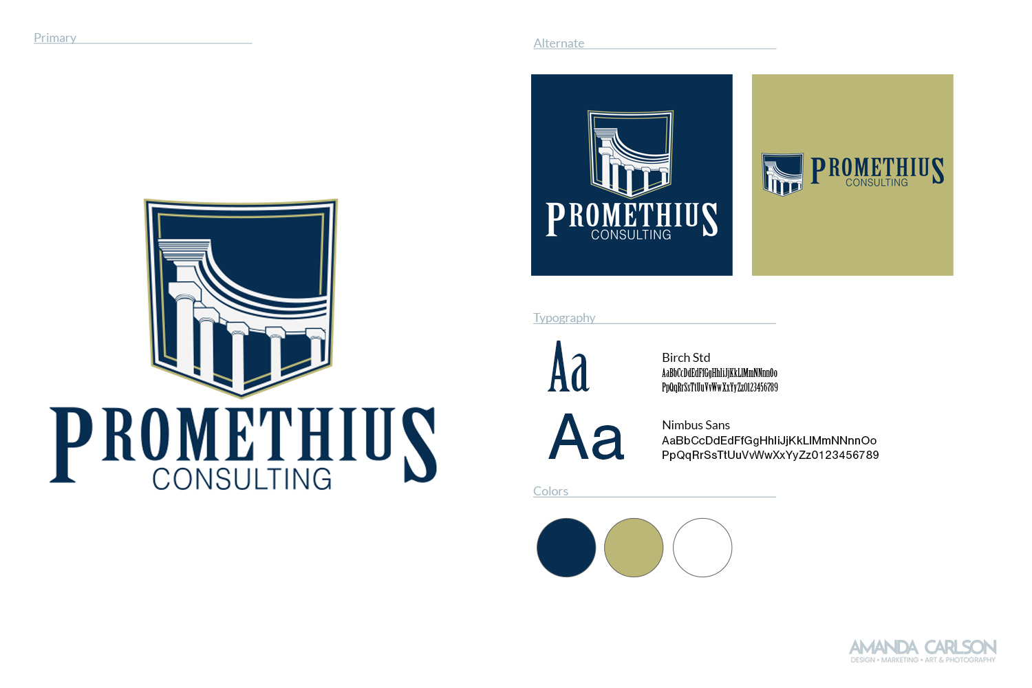 Promethius is a structural engineering firm. Their logo was to be bold, strong, and something that felt it could withstand anything. Utilizing a shield and roman columns, the icon conveys feelings related to size, strength, trustworthy. The navy blue juxtaposed to a Vegas gold feels confident and in control