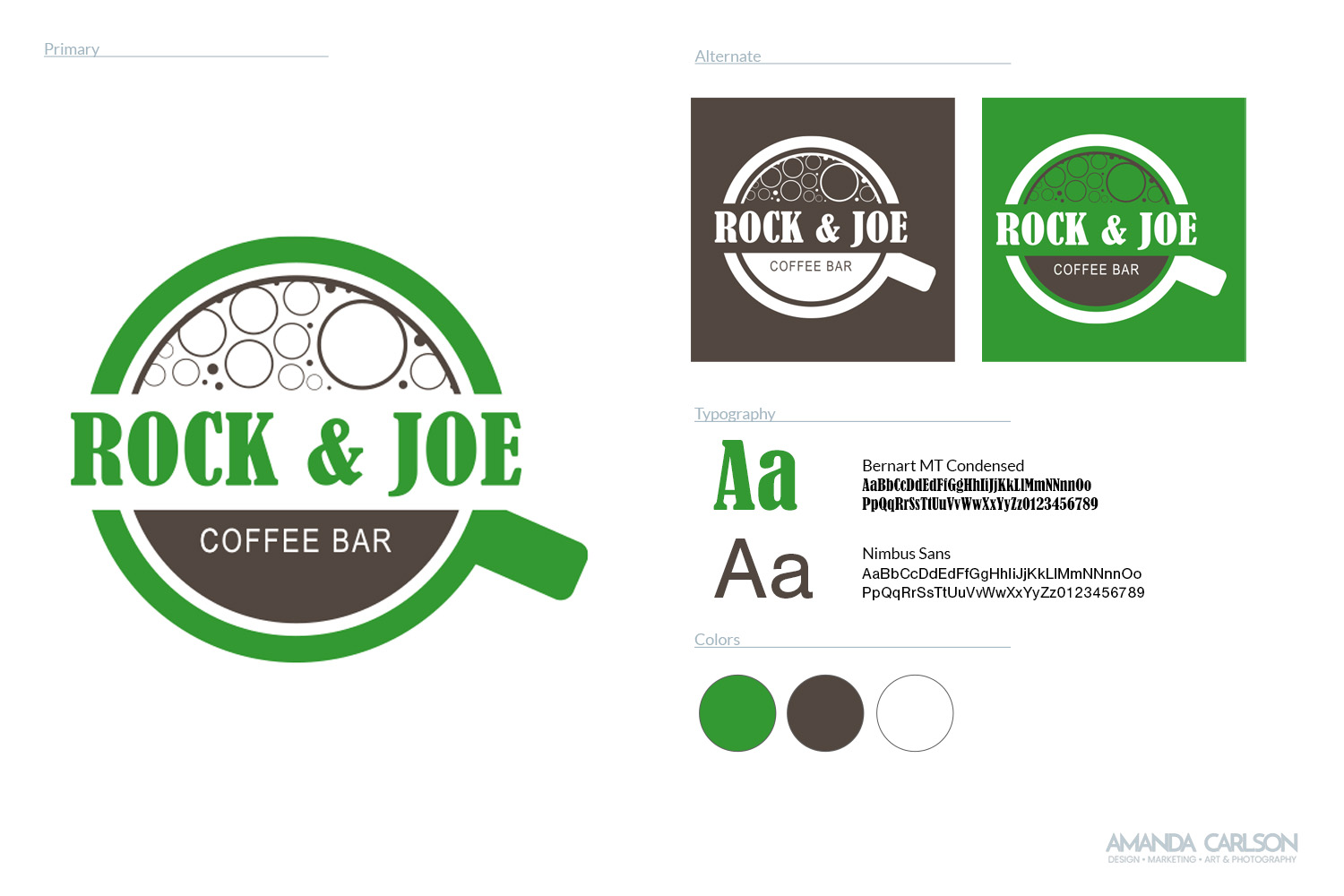 Rock & Joe is a unique concept that I wish I had worked with for more than this logo. They were a multi-use venue functioning as a coffee house during the day and a music venue at night. The front of the building had a round sign that they wanted to repurpose with as little changes as possible to keep costs down. The also requested non-traditional coffee shop colors. Thus, the concept for Rock & Joe was born. Sadly, they no longer use this logo, but I still like it.