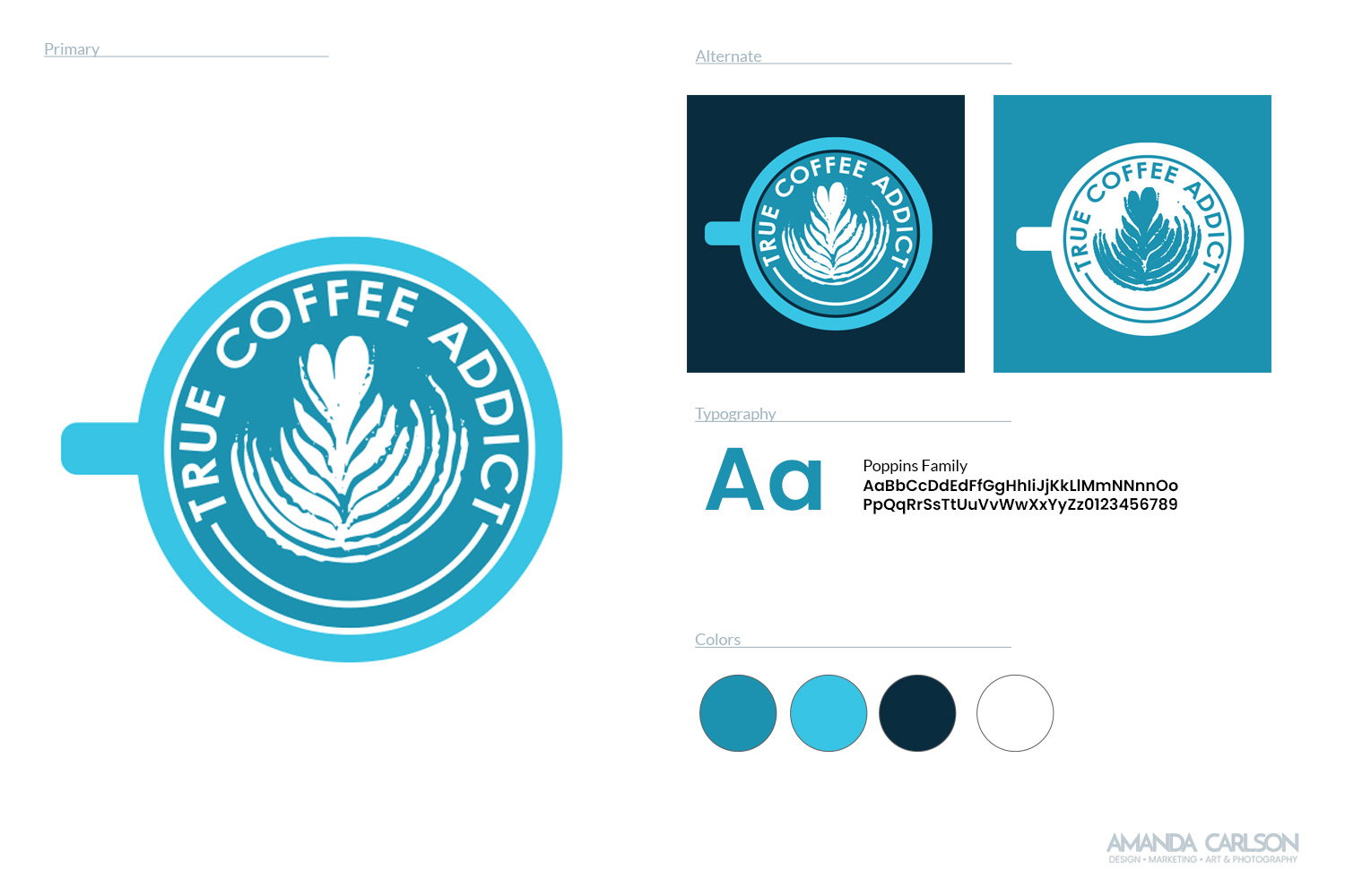 A proposed self-contained logo for a coffee review blog. I personally preferred this in an orange and brown scheme because it was warm, but this blue and aqua is what the client preferred.